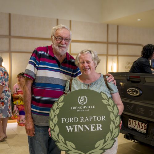 Frenchville Sports Club has officially drawn the winner of its major Ford Ranger Raptor Giveaway, with local member Jan Robertson driving away in a brand new Ford Ranger Raptor valued at over $100,000.