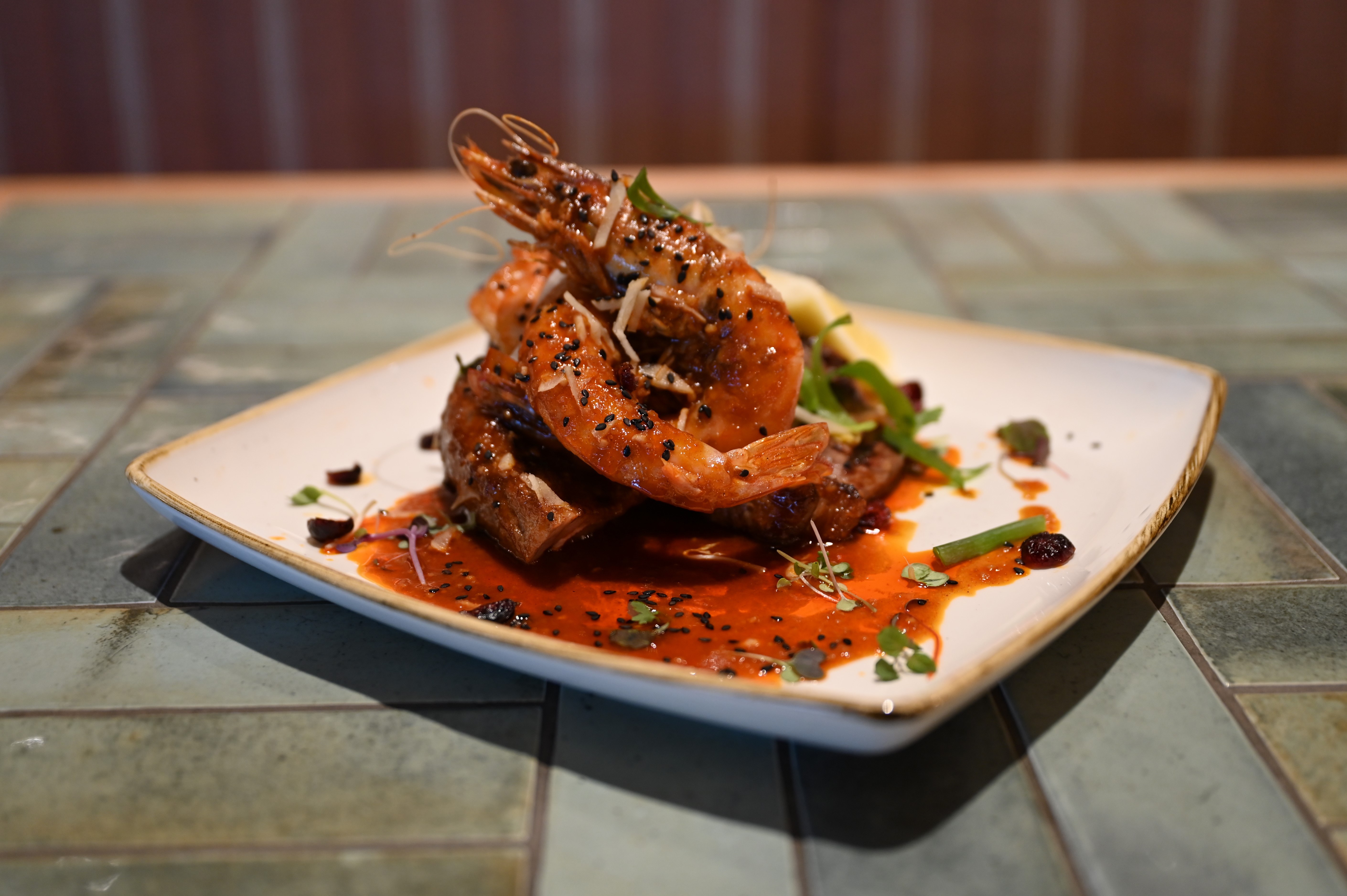 CHARRED PORTERHOUSE WITH GOCHUJANG PRAWNS | $40